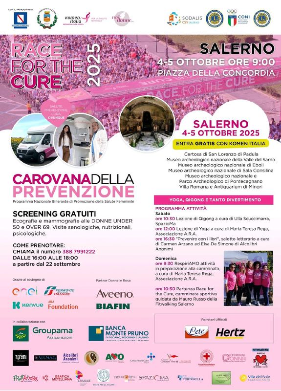 Torna a Salerno la "Race for the Cure", oramai nota come la più importante manifestazione in Italia e nel mondo per la lotta contro i tumori del seno.