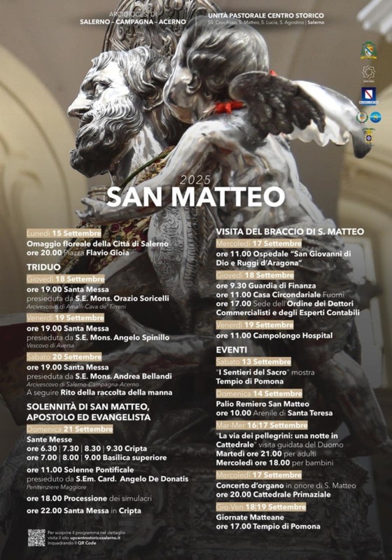 "Celebrare il nostro Patrono San Matteo rappresenta una grande occasione per ritornare alle origini autentiche della nostra identità ecclesiale e cittadina. – ha osservato S.E. Monsignor Andrea Bellandi - Quest’anno, poi, la Solennità si interseca con l’Anno Giubilare che stiamo vivendo e rappresenta così un ulteriore stimolo per essere Pellegrini di speranza, in un momento storico, come quello attuale, gravato da conflitti e orizzonti futuri preoccupanti. Ma, come diceva Papa Francesco, nessuno possa rubarci la speranza!", ha concluso l’Arcivescovo.